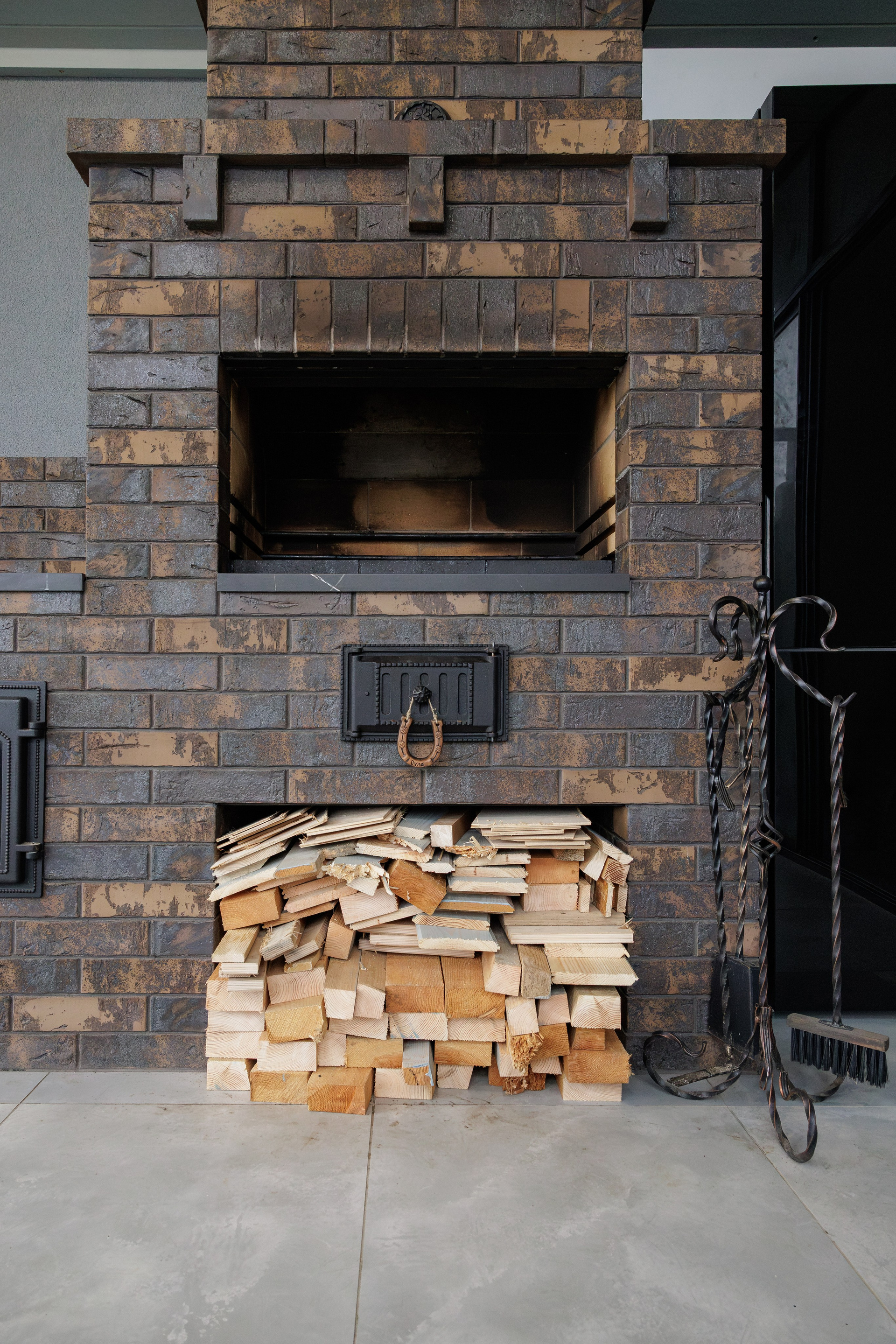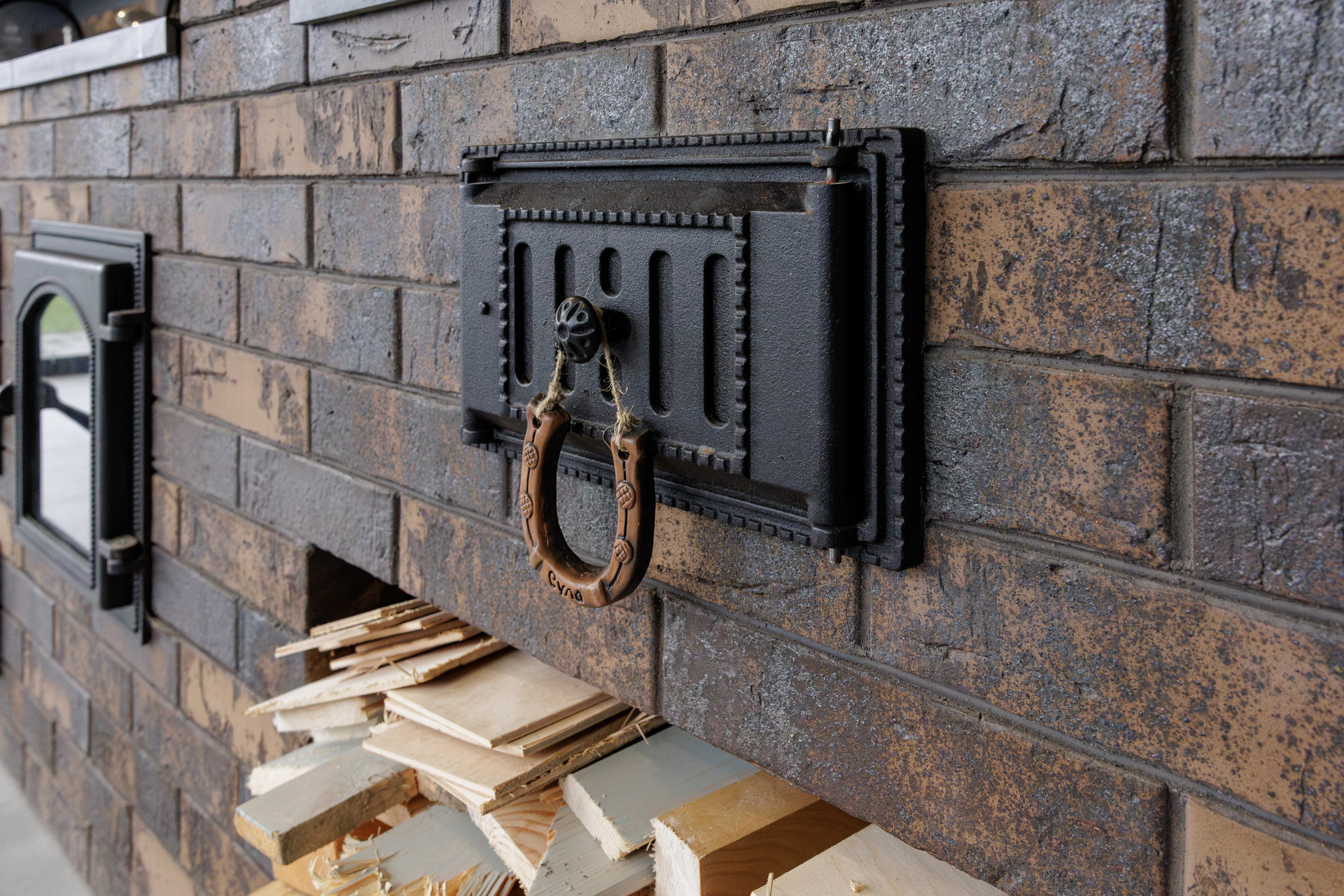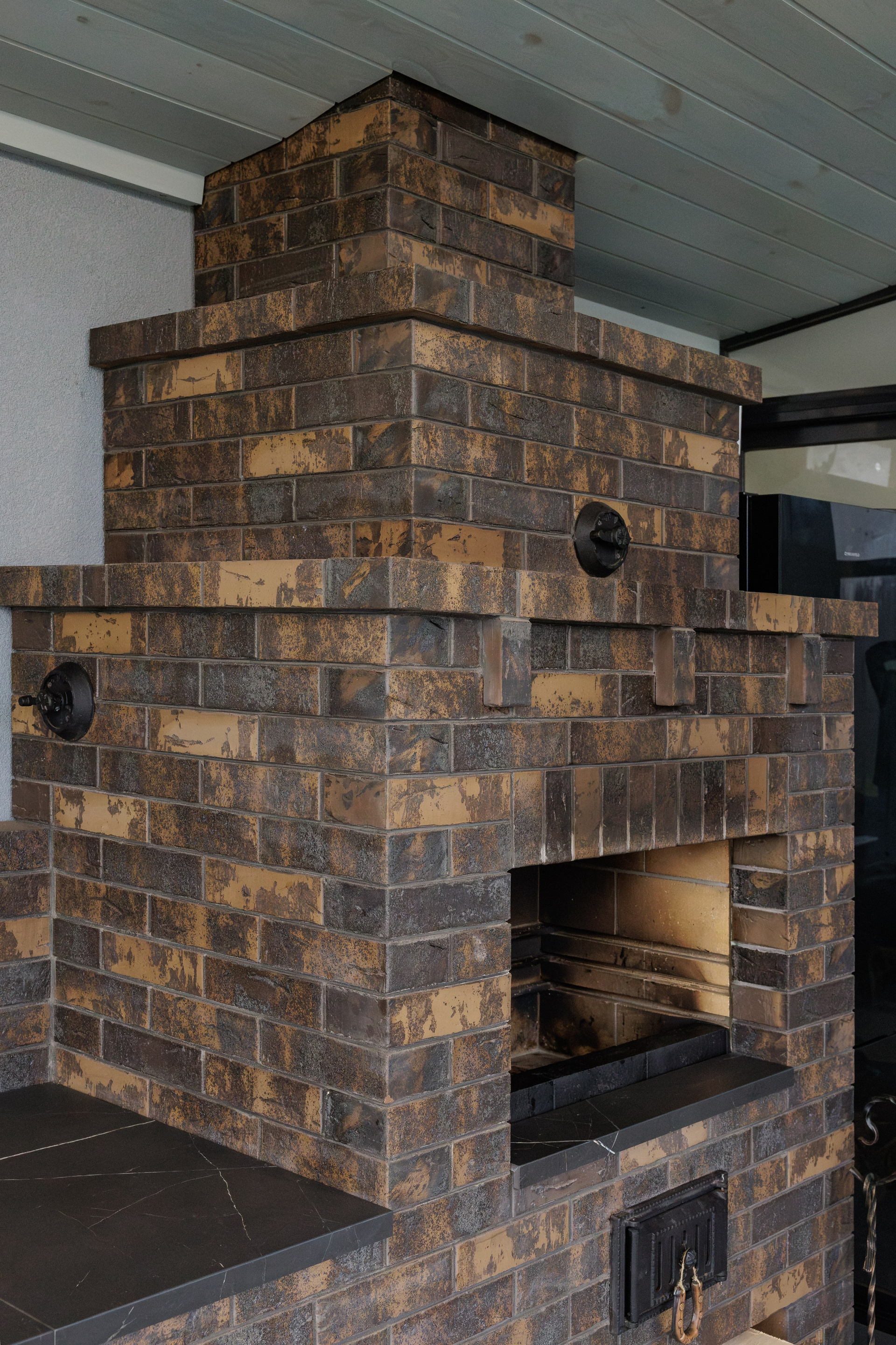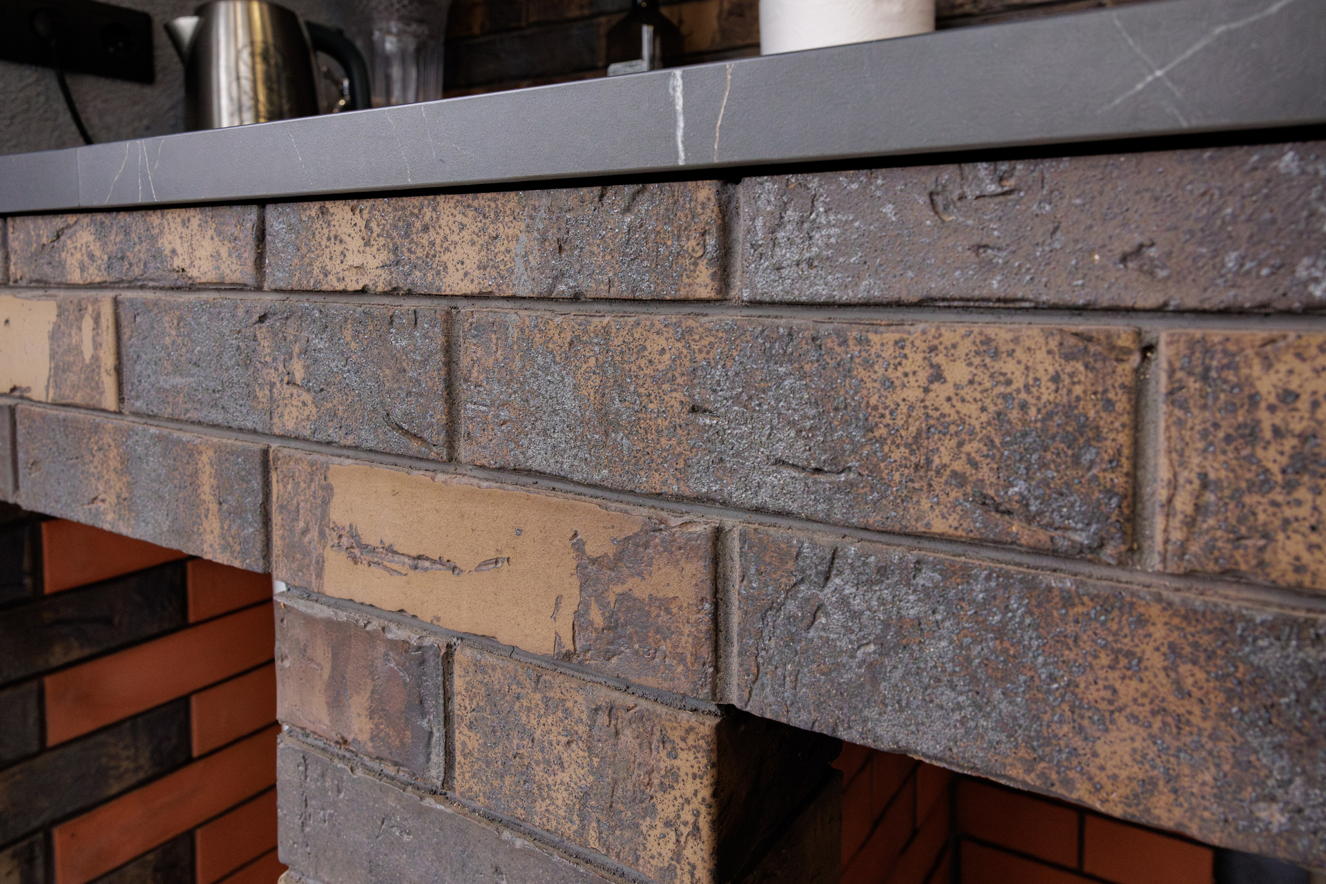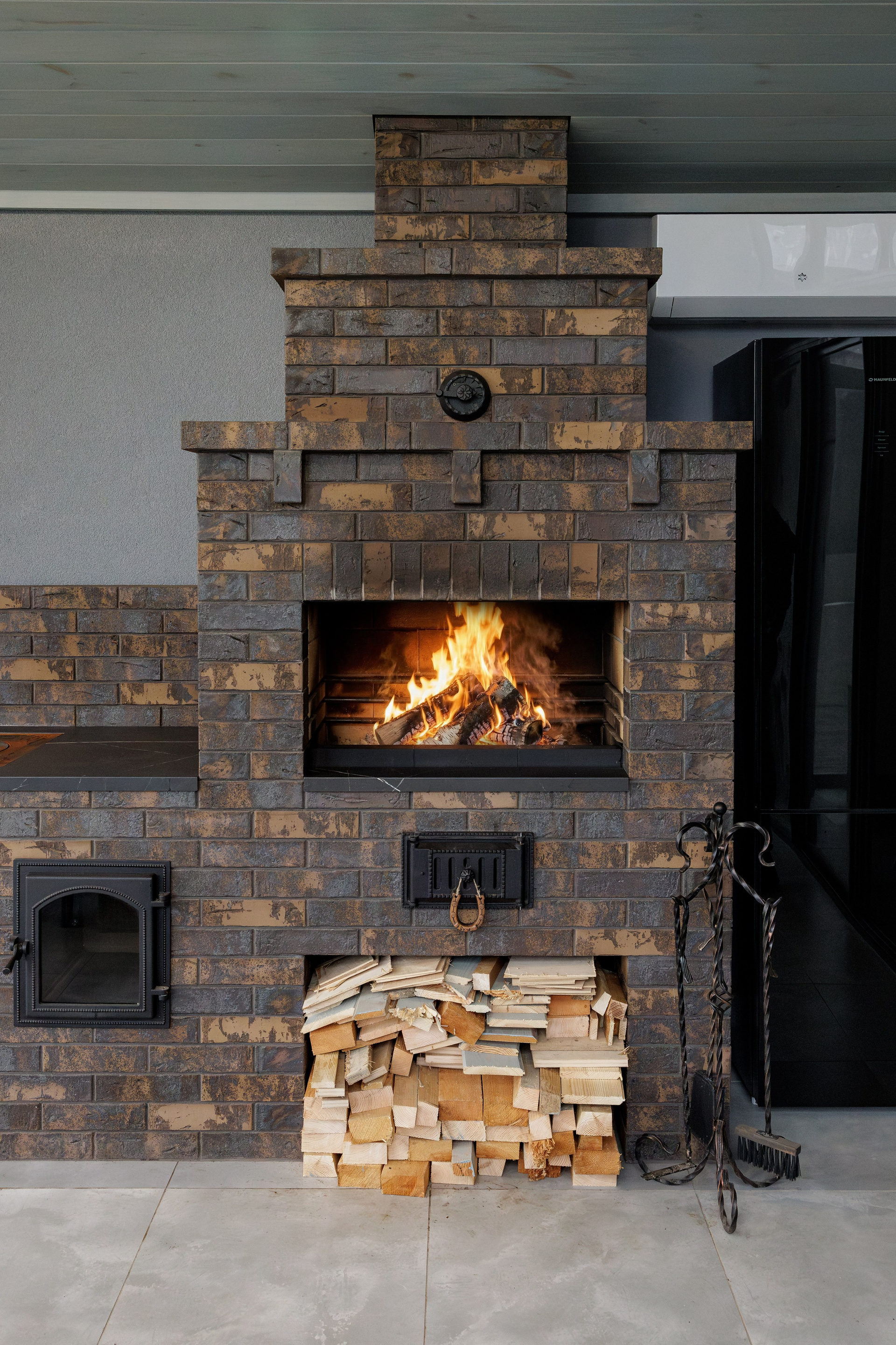 Съемка кухни с печью из керамического лицевого кирпича