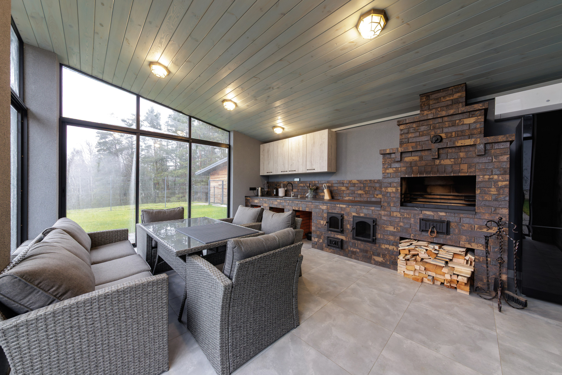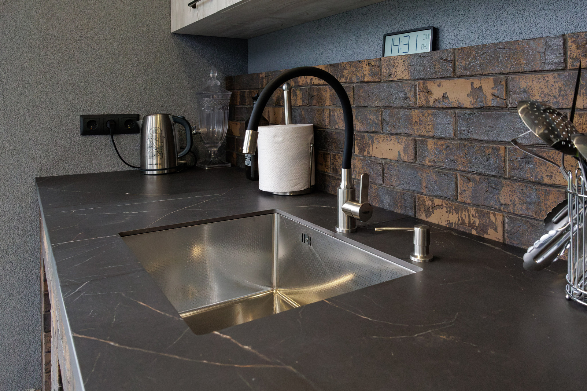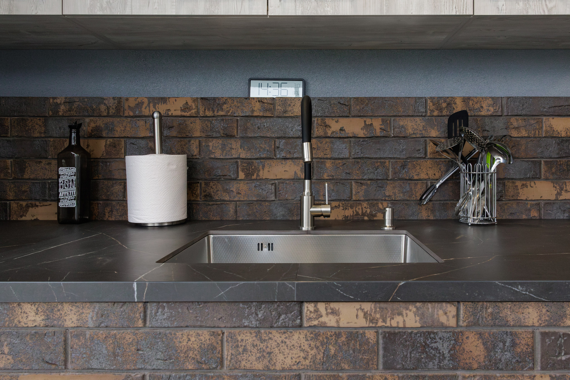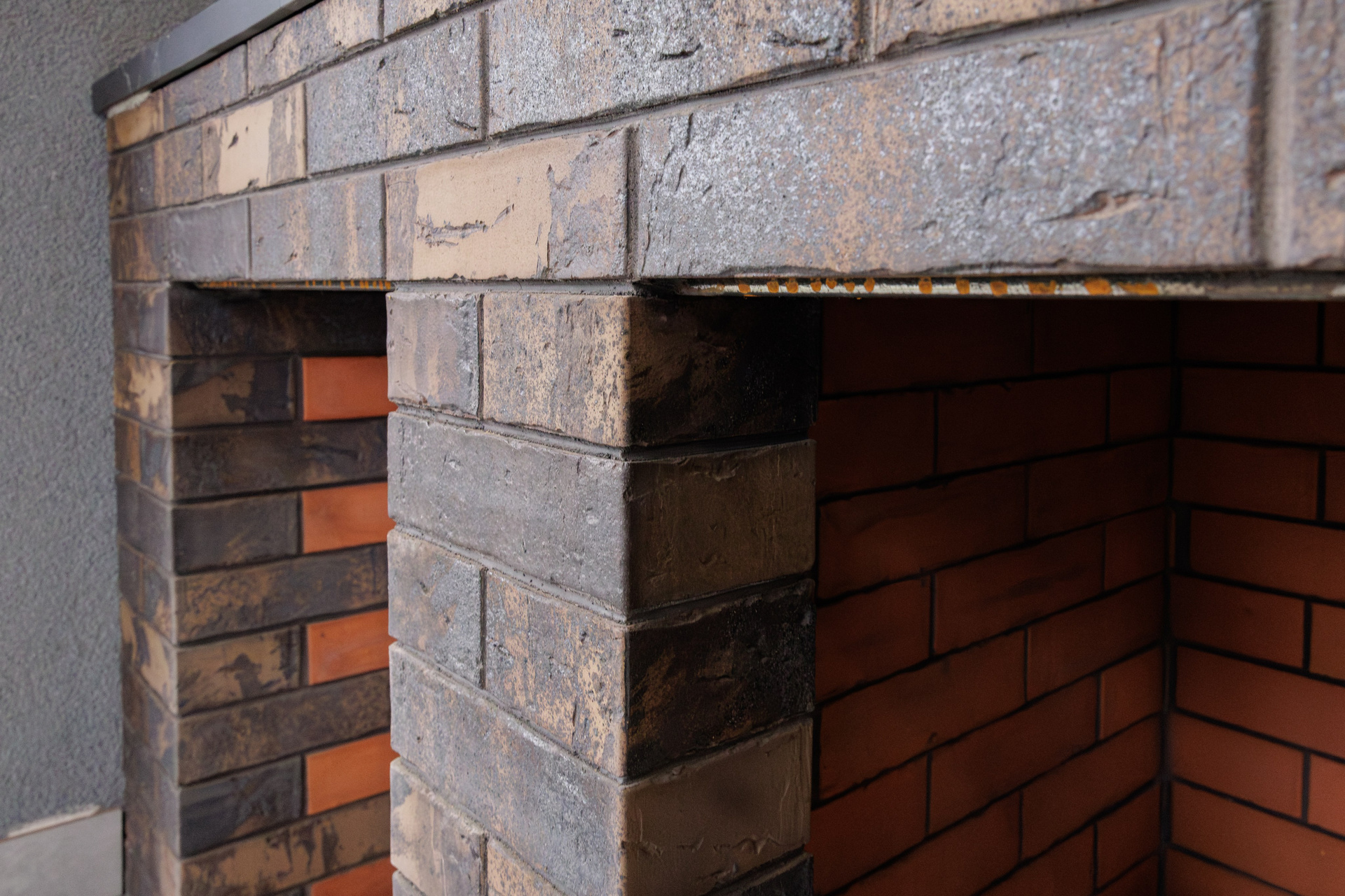 Съемка кухни с печью из керамического лицевого кирпича